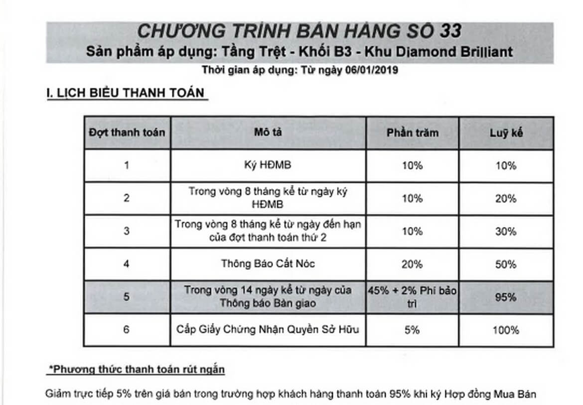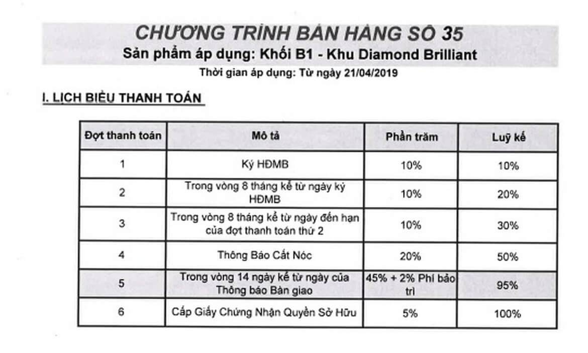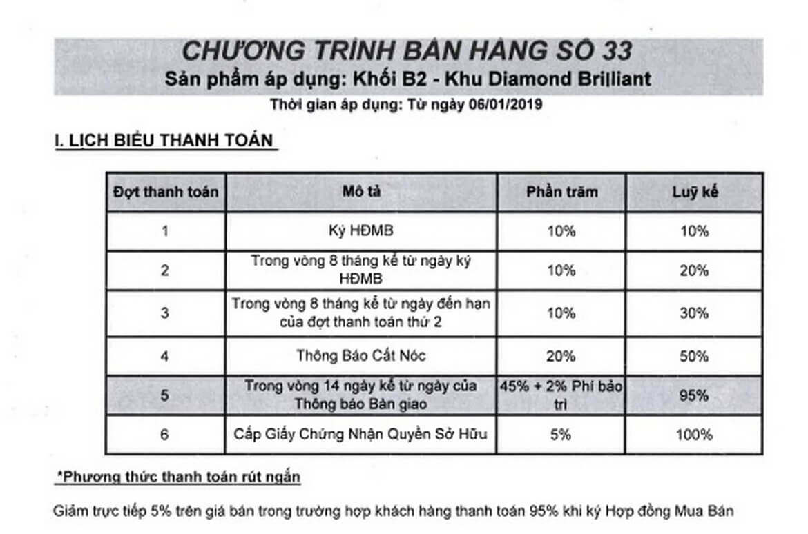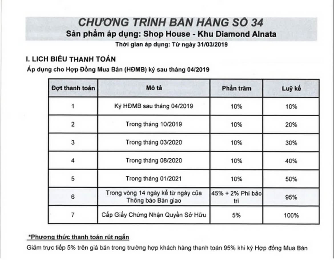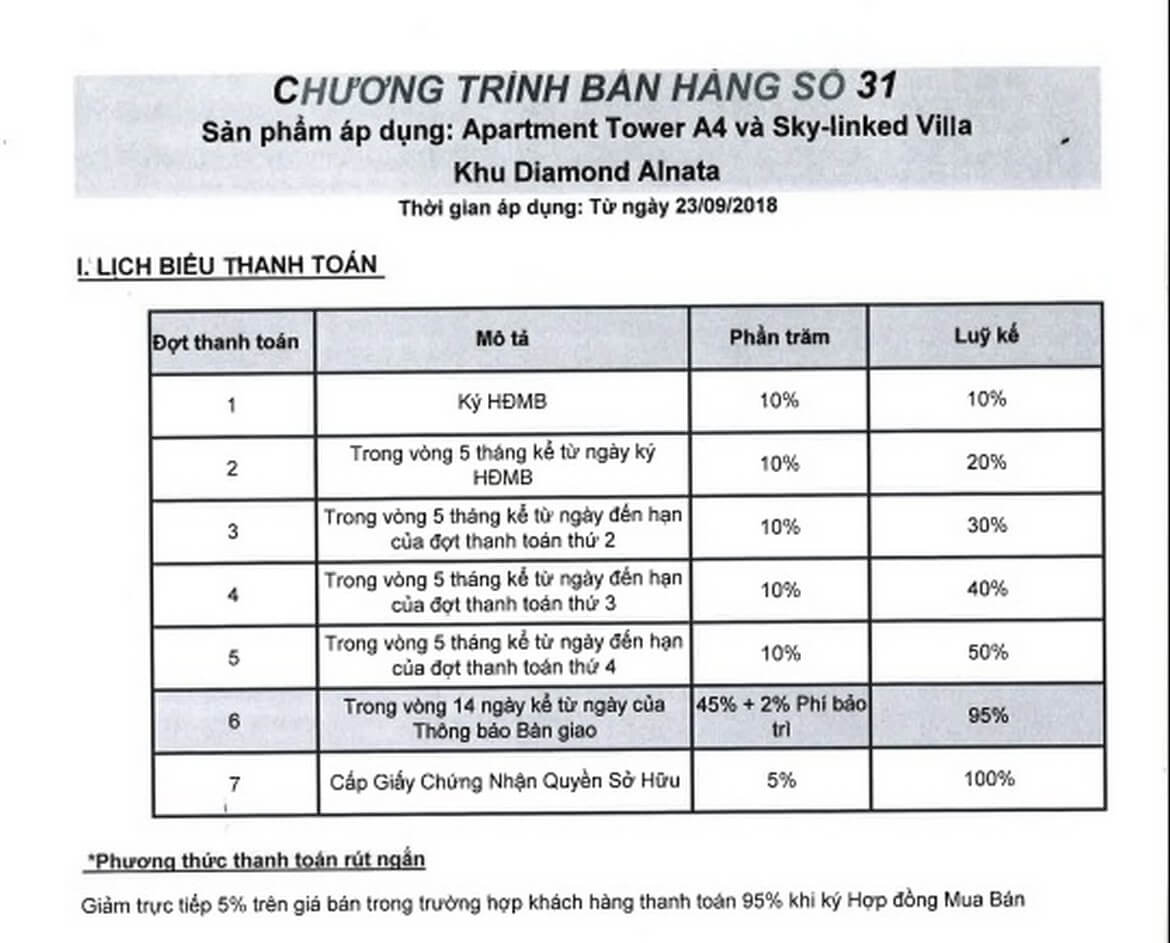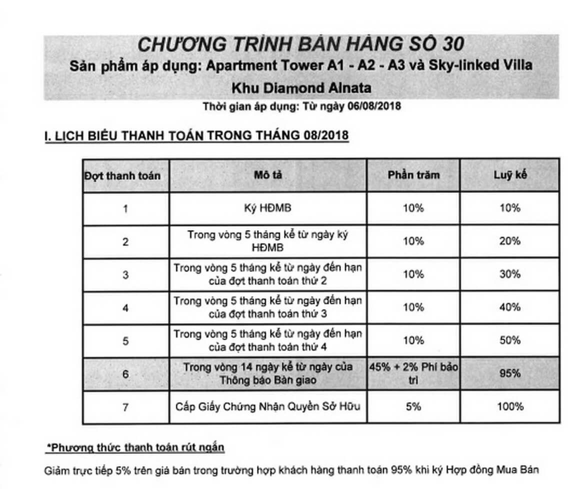 + Lịch thanh toán phân khu căn hộ Diamond Alnata