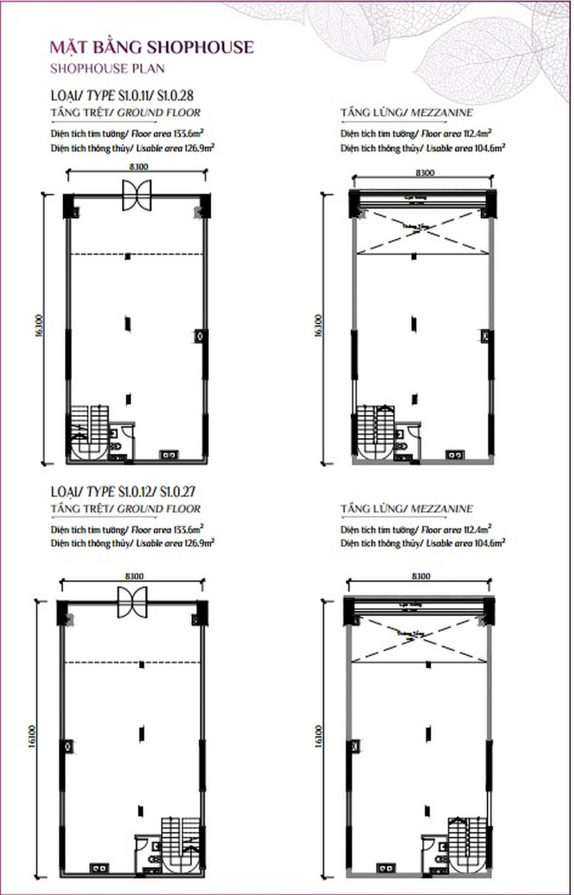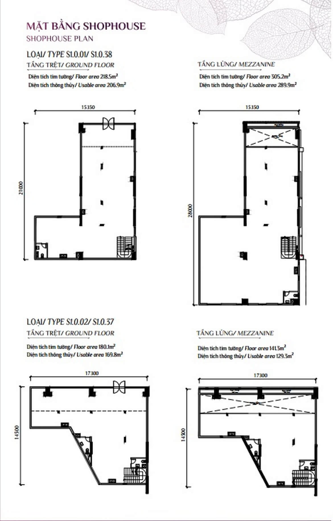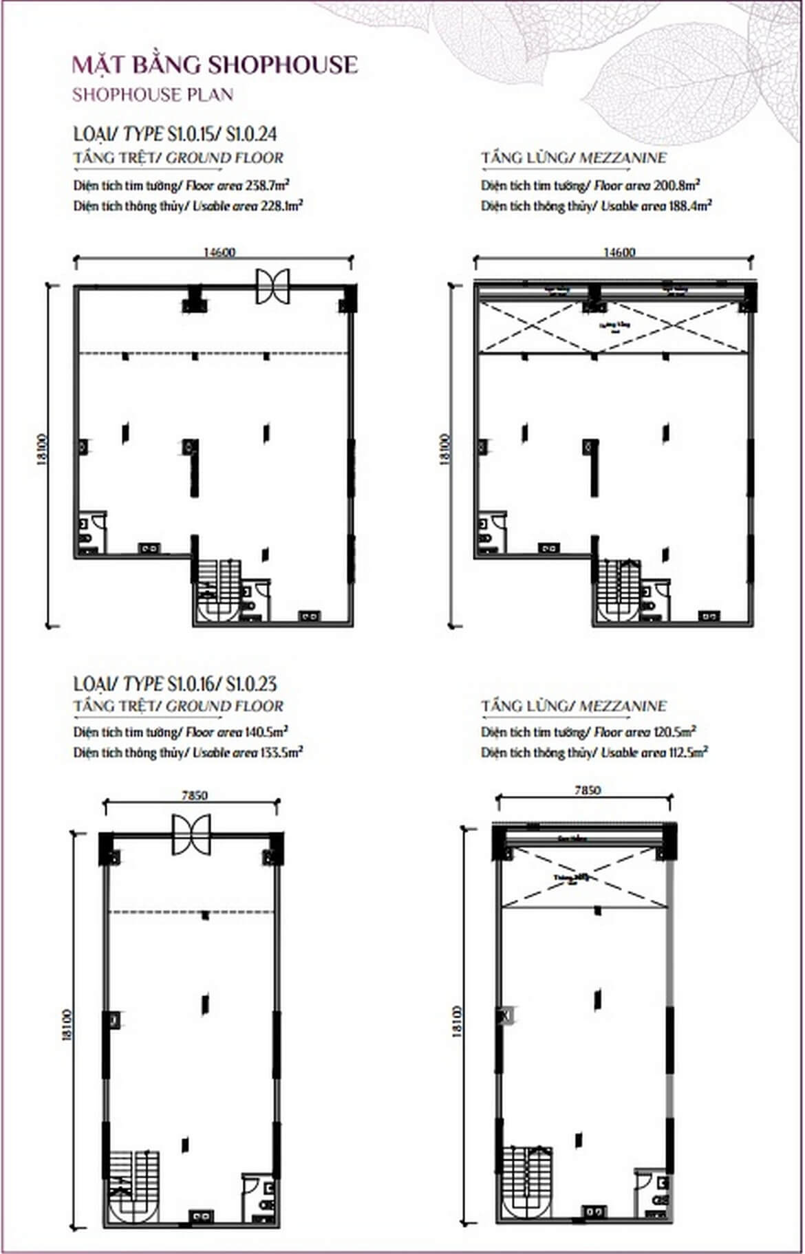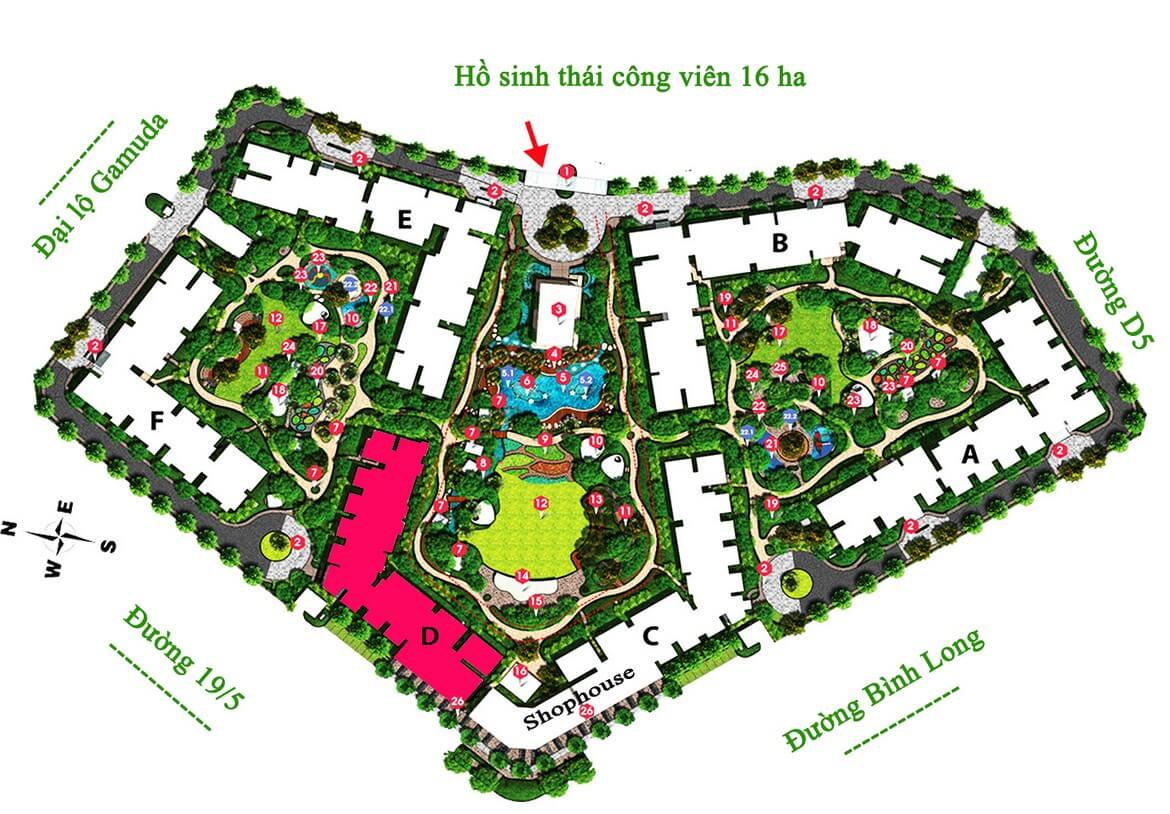 - Giá shophouse: 16 – 46 tỷ, diện tích từ 180 – 543m²