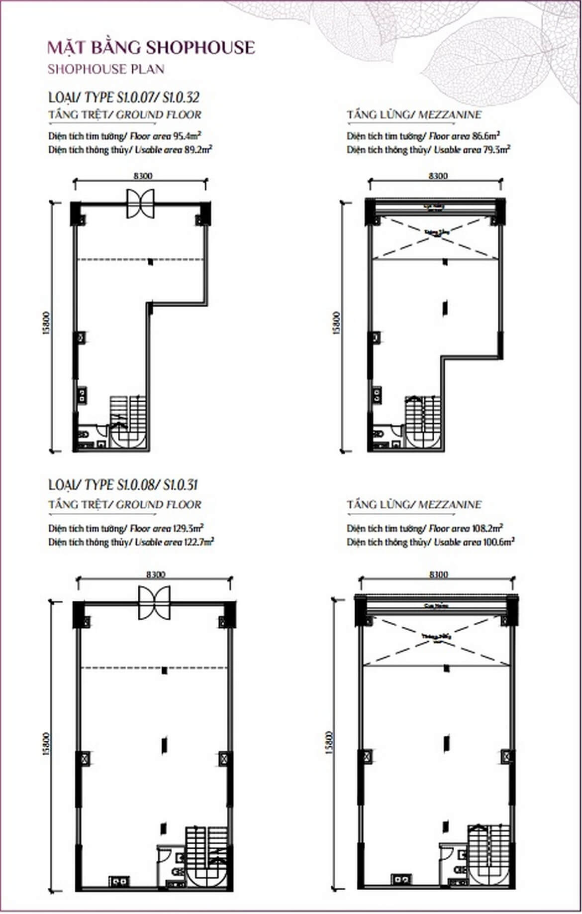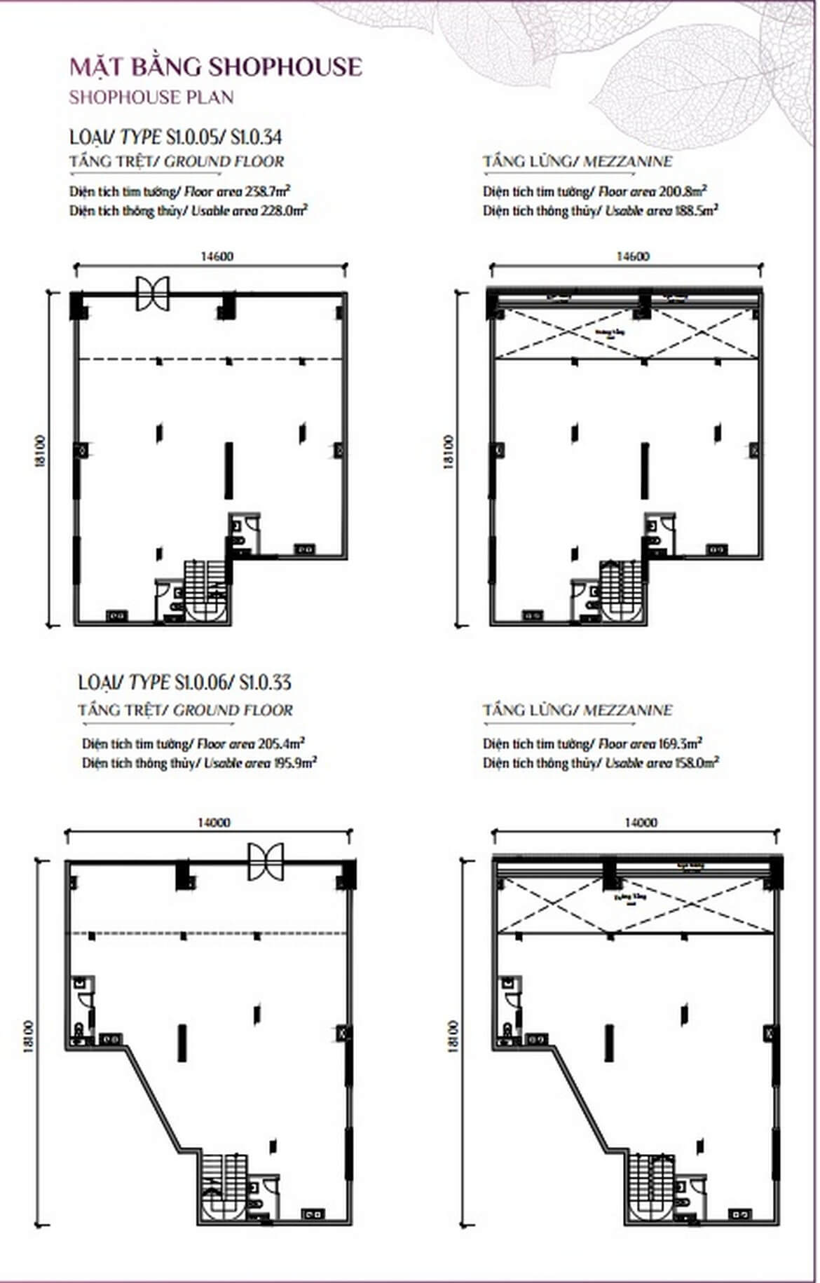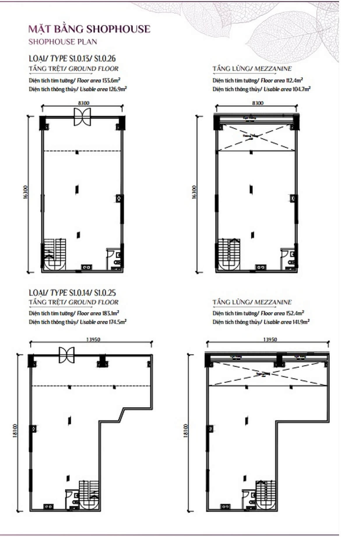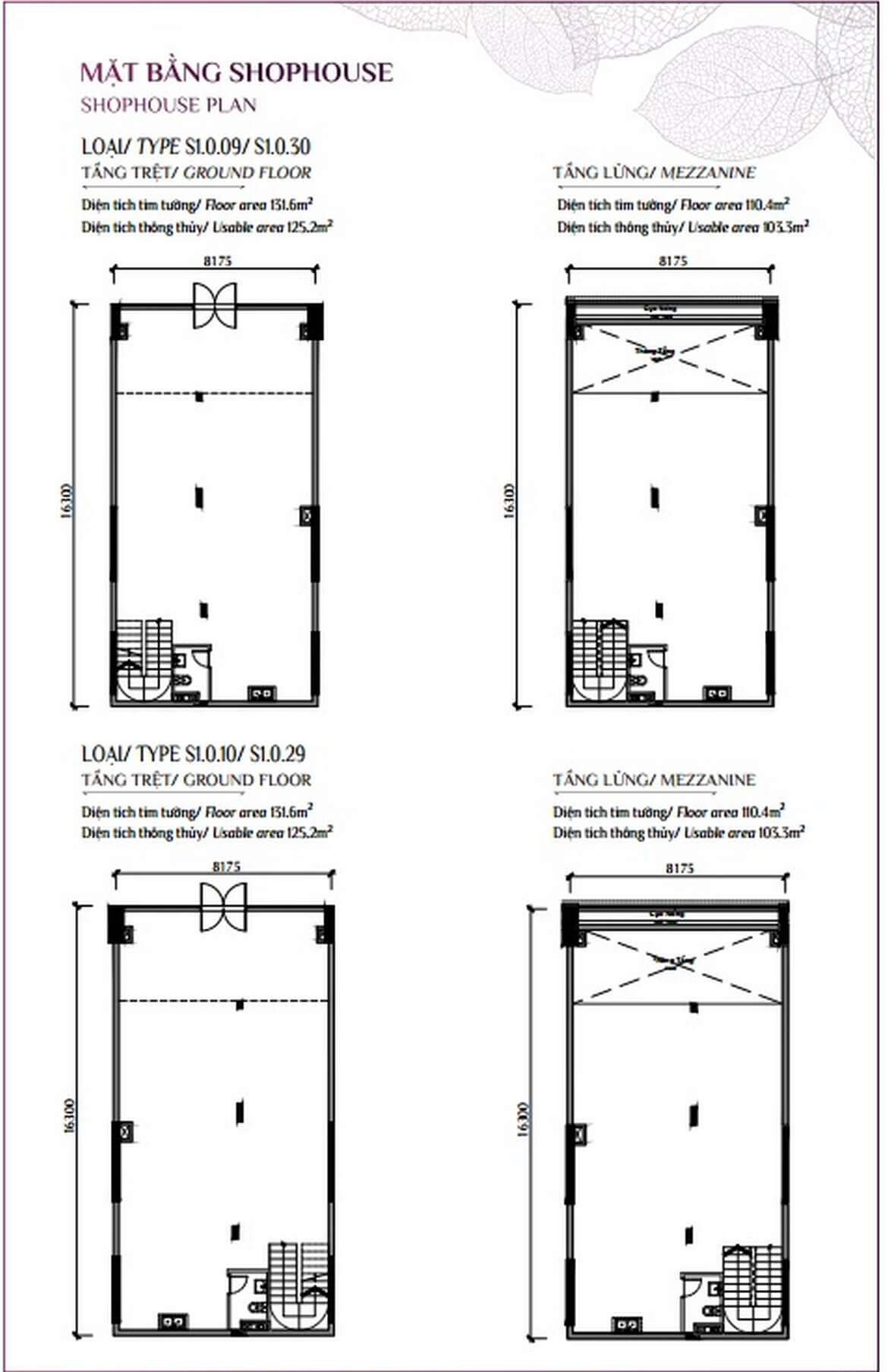 - Giá shophouse: 16 – 46 tỷ, diện tích từ 180 – 543m²