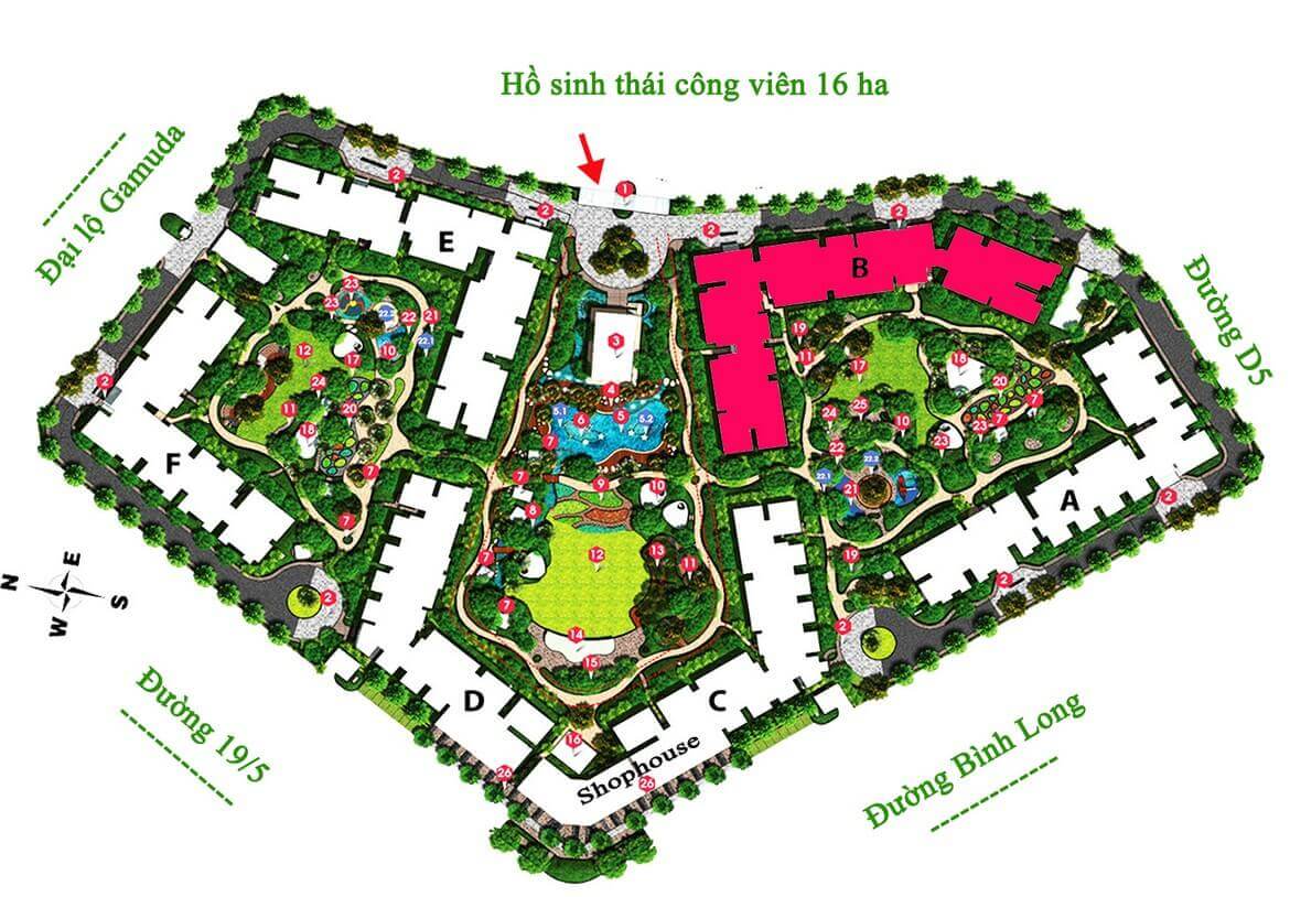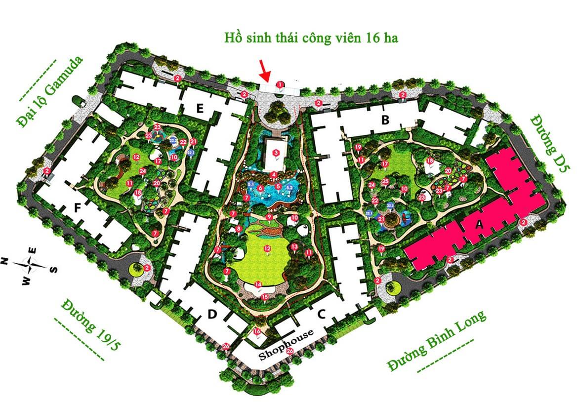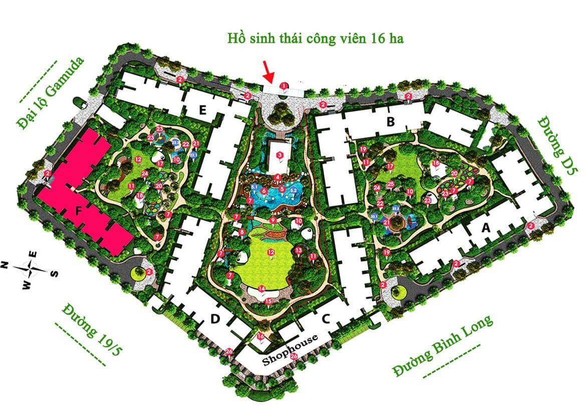 | Tiện ích: | Công viên 16ha; trung tâm thương mại Aeon Mall 7ha; Khu thể thao phức hợp 5.43ha; khu giáo dục 7.31ha; hồ bơi tràn bờ; phố đi bộ; làng văn hóa |