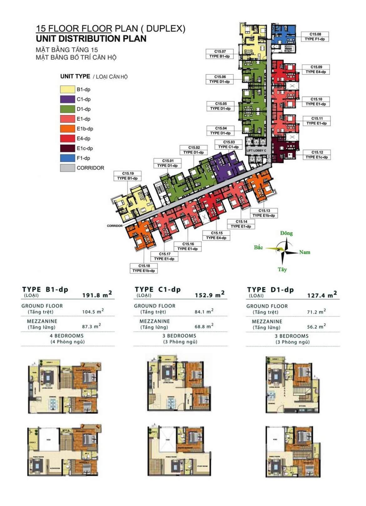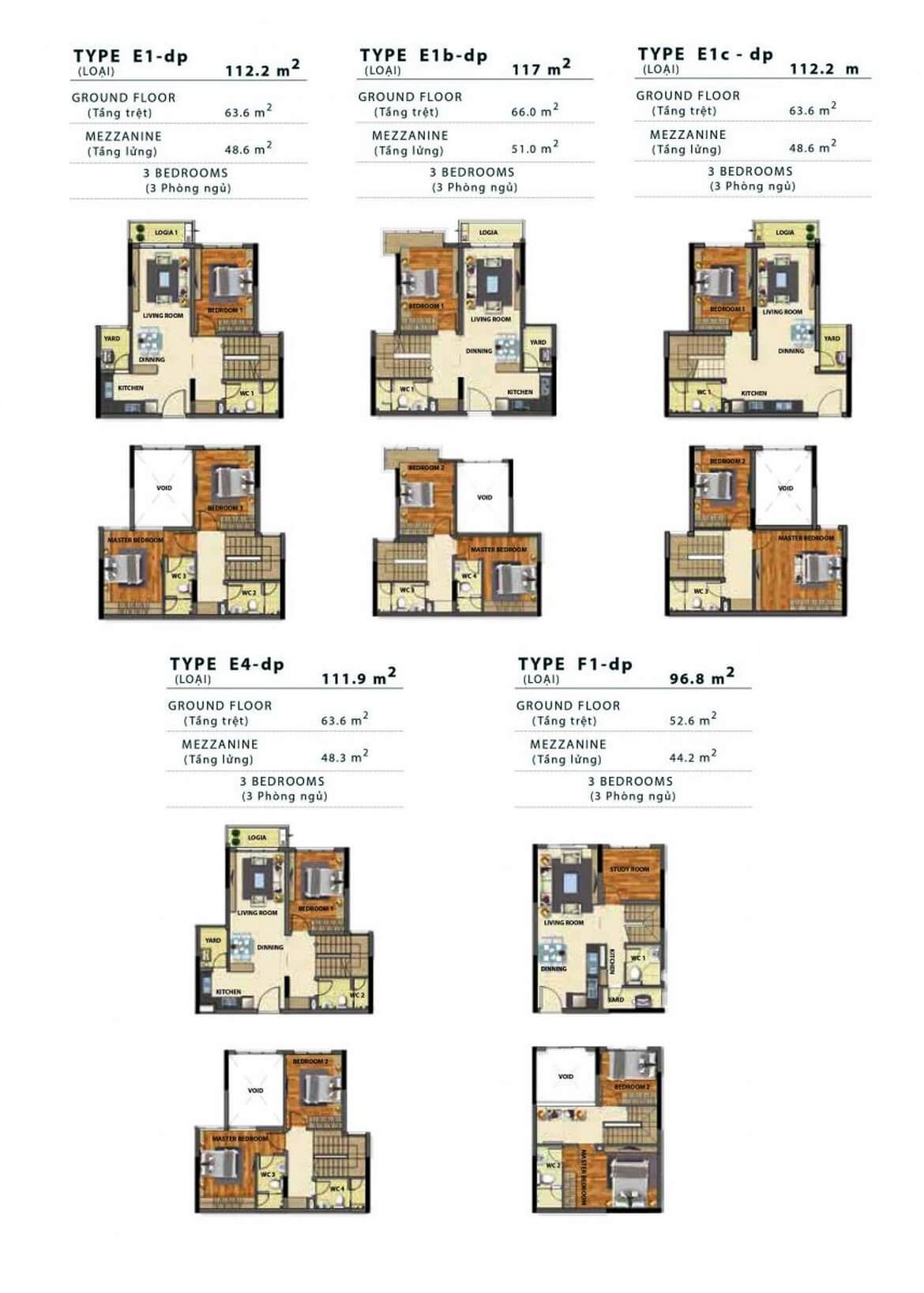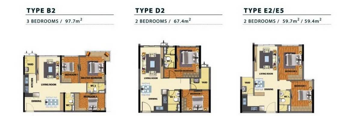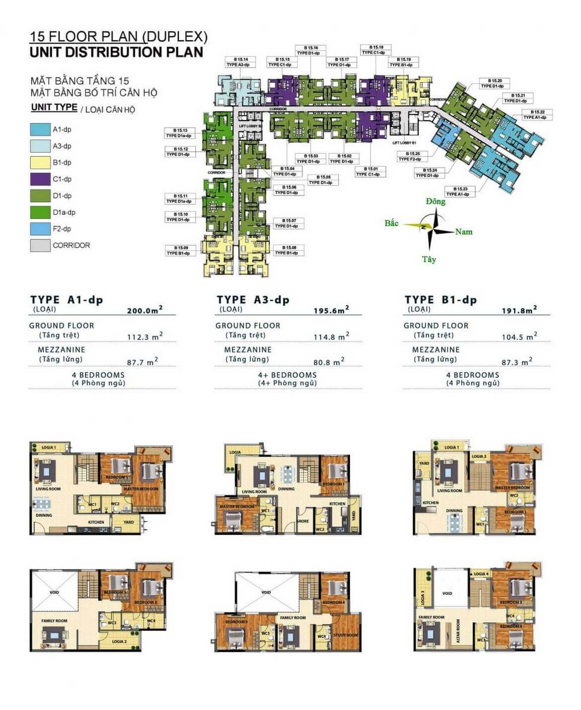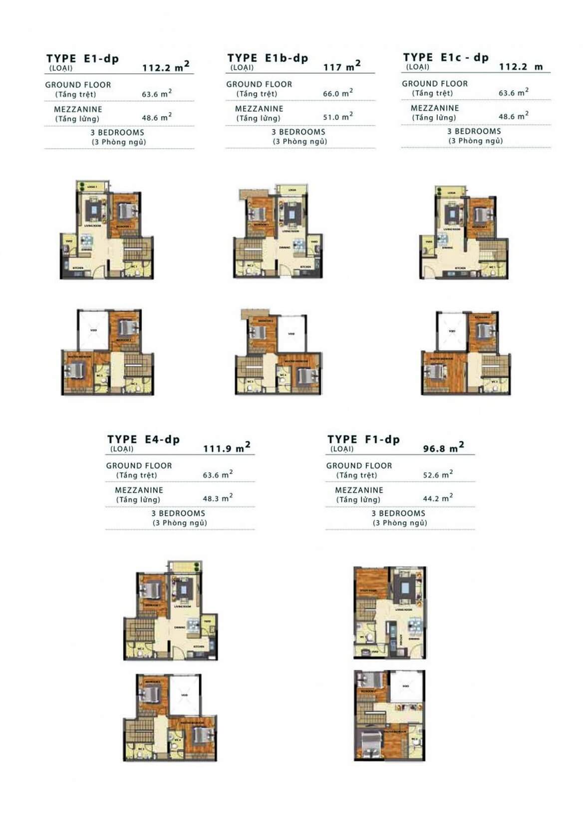 - Giá căn hộ Duplex: 3.4 tỷ – 8 tỷ, diện tích từ 98 – 200m²