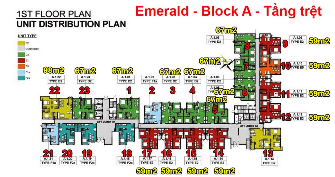 Layout thiết kế căn hộ Emerald Celadon City tháp A