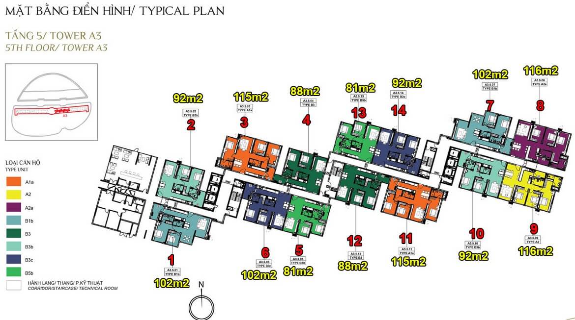 - Giá căn hộ Alnata 3 PN: 104m² – 119m² : 5 tỷ – 5.6 tỷ