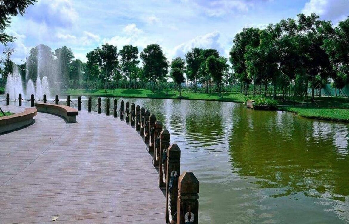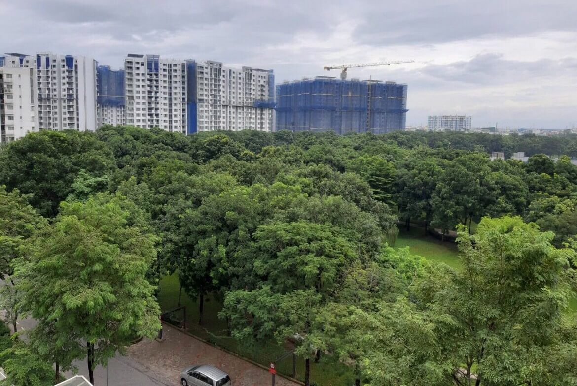 Với tổng diện tích quy hoạch lên đến 82ha, dự án dành 16ha để xây dựng một công viên cây xanh. Tại đây, có tổng cộng 6.000 cây thân gỗ, 70.000 cây nhỏ và 140.000m² diện tích thảm cỏ. Khu vực cây xanh này được chăm sóc kỹ lưỡng và bao gồm một hồ nước nhân tạo, tạo nên một hệ thống thủy lưu độc đáo – là một hệ thống thủy lưu đầu tiên tại Việt Nam. Hệ thống thủy lưu này giữ vai trò quan trọng trong việc duy trì và nuôi dưỡng “lá phổi xanh” của khu đô thị.