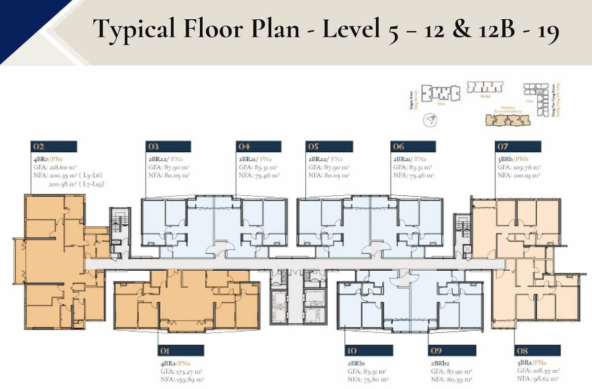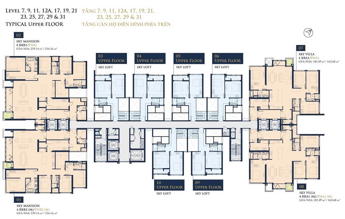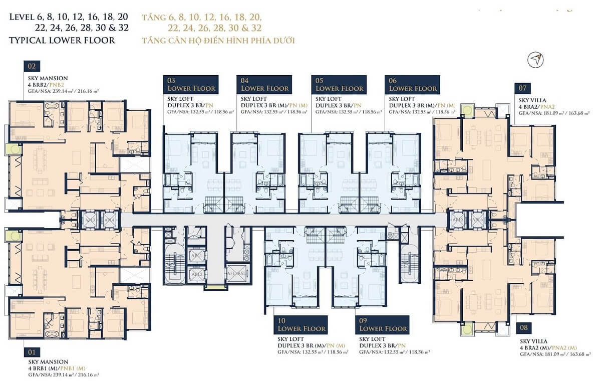 | Diện tích căn hộ: | – 1 phòng ngủ: 58m² – 2 phòng ngủ: 85m² – 3 phòng ngủ: 106 – 115m² – Duplex: 102 -106m² – Sky Villa: 132 – 239m² |