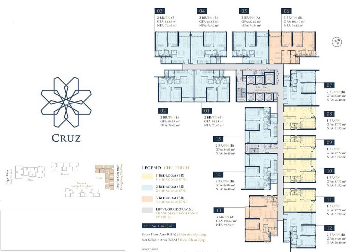 Từ “Cruz” cũng có nguồn gốc từ tiếng Tây Ban Nha, thể hiện ý nghĩa về sự tỉ mỉ, tinh hoa, và sự kết hợp. Tháp Cruz cao 34 tầng và bao gồm tổng cộng 450 căn hộ, bao gồm nhiều loại căn hộ từ 1 đến 3 phòng ngủ. Tháp Cruz tập trung nhiều tiện ích đẳng cấp như hồ bơi resort, bãi biển nhân tạo, khu suối nước nóng, rạp chiếu phim ngoài trời, và nhiều tiện nghi khác.