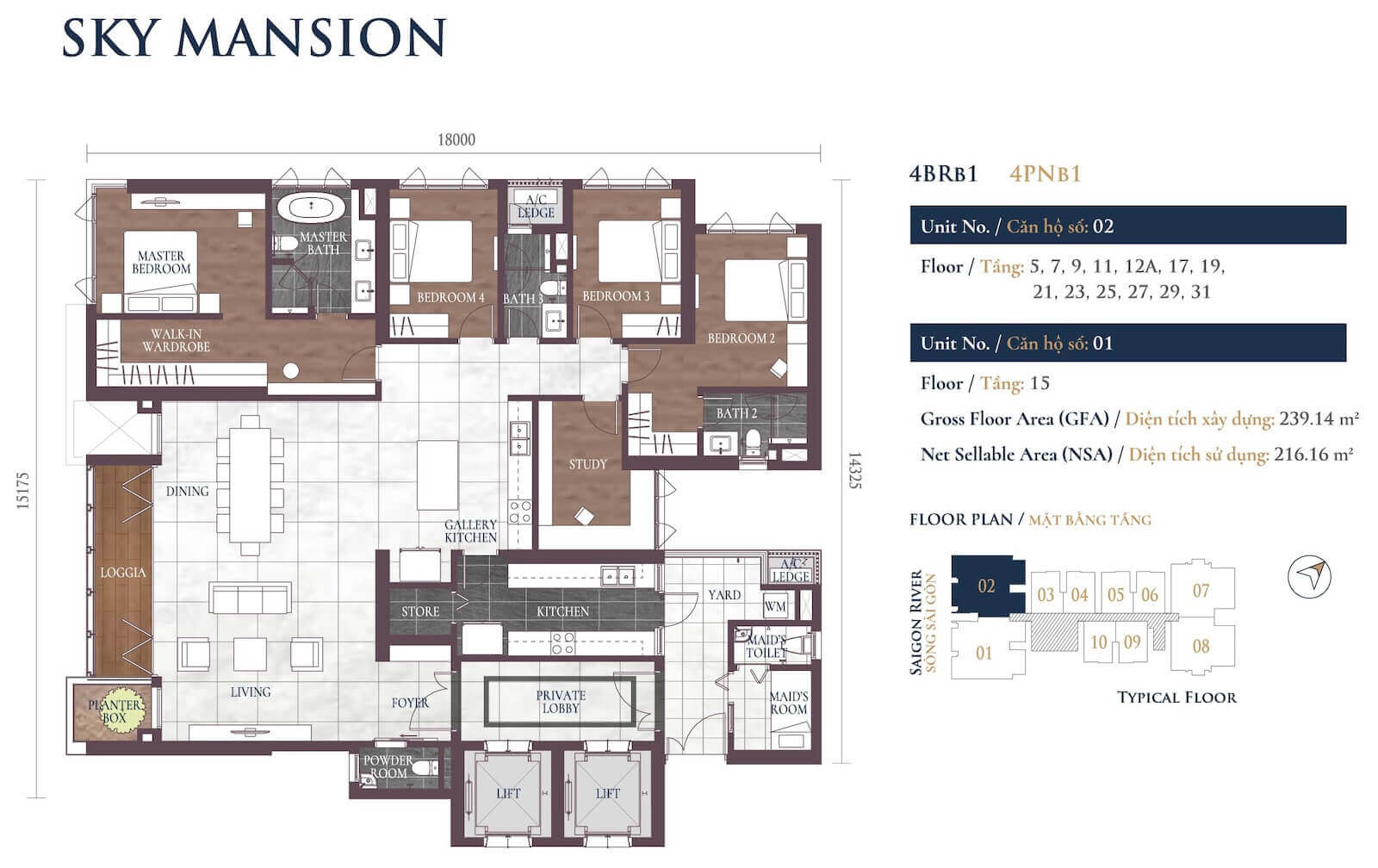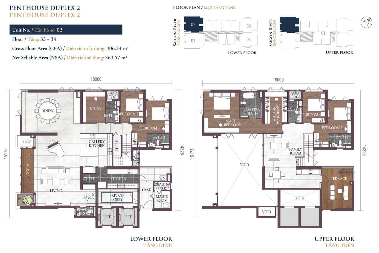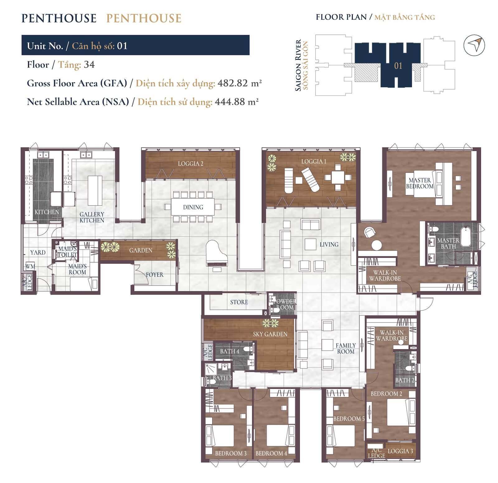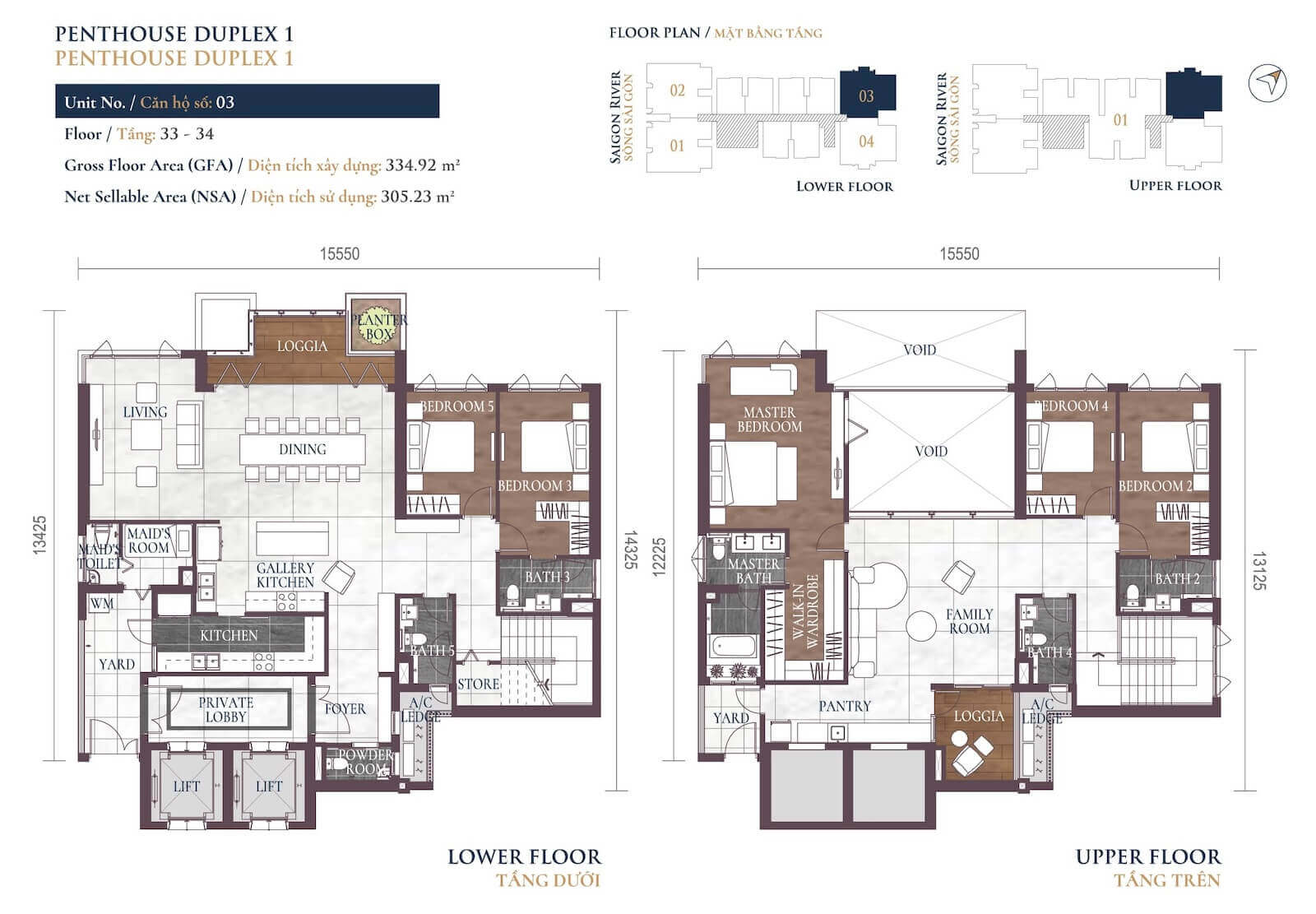 4–6 phòng ngủ, Duplex, Penthouse (181–560 m²): 19–65 tỷ VND.