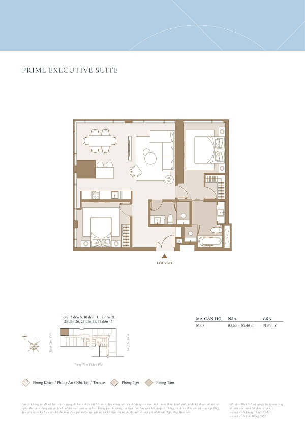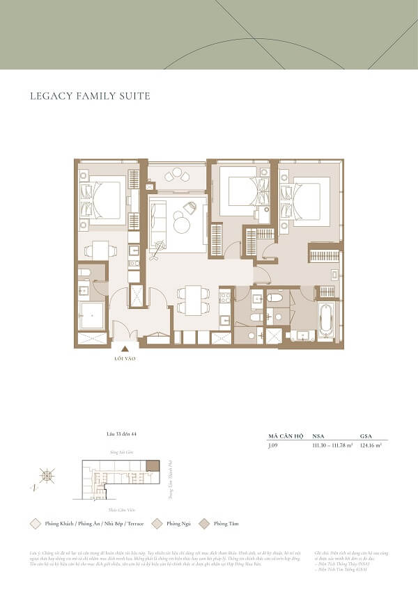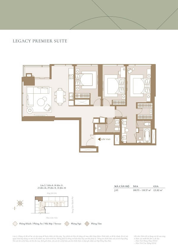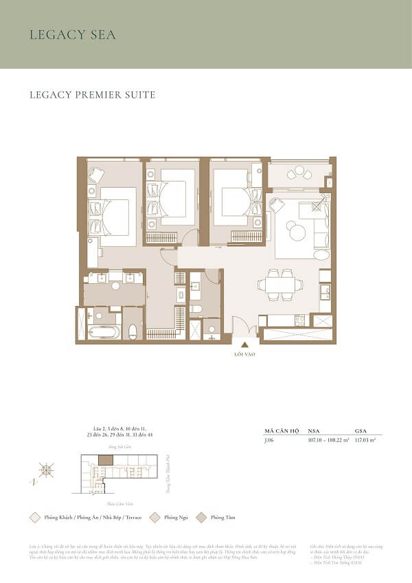 | Căn hộ 3 phòng ngủ | 106m² | 41 tỷ/căn |