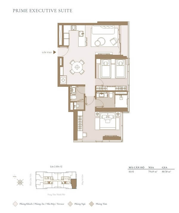 | Căn hộ 2 phòng ngủ | 78 – 100m² | 26 tỷ/căn |