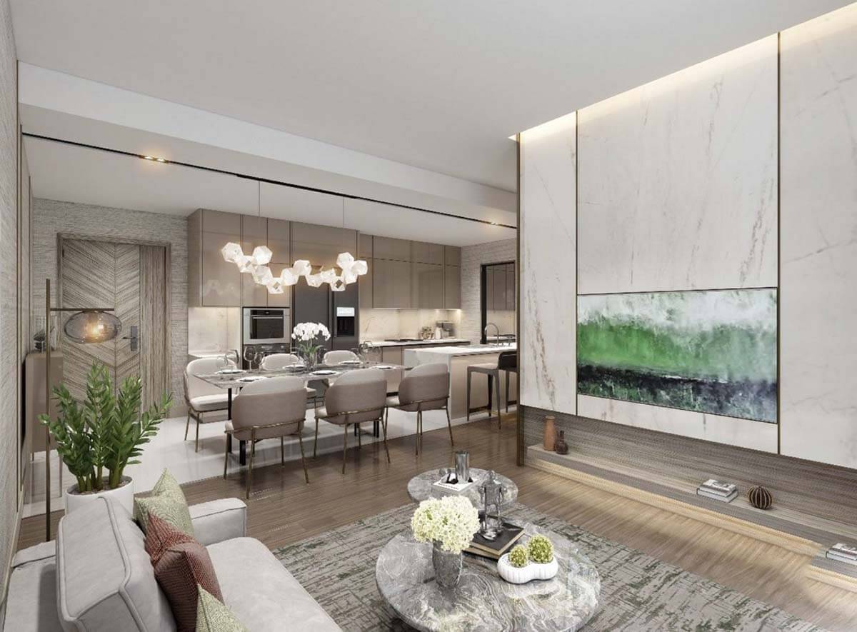 Đồng thời, việc tăng chiều cao của tầng và sử dụng hệ thống kính từ sàn đến trần đã làm tan biên mọi ranh giới giữa không gian trong nhà và ngoài trời. Điều này tạo nên một cảm giác thoải mái và rộng rãi đáng kể cho cư dân tại đây.