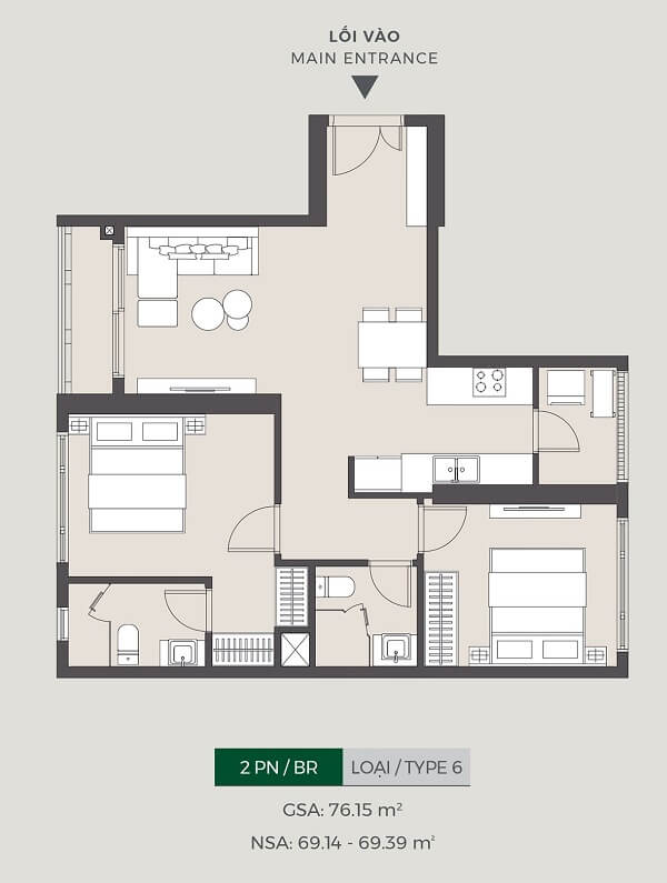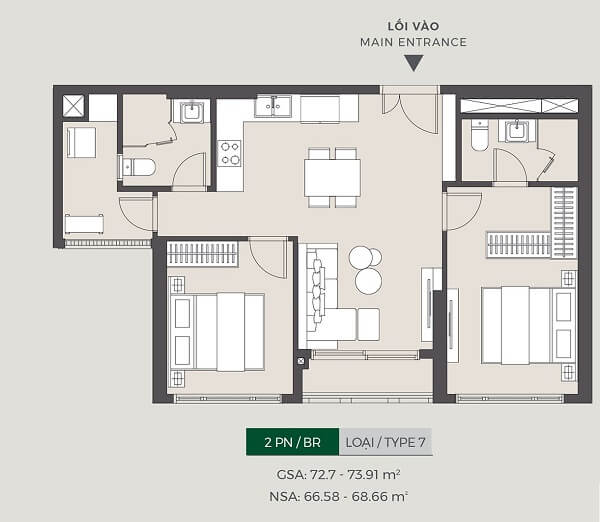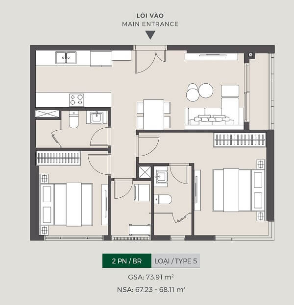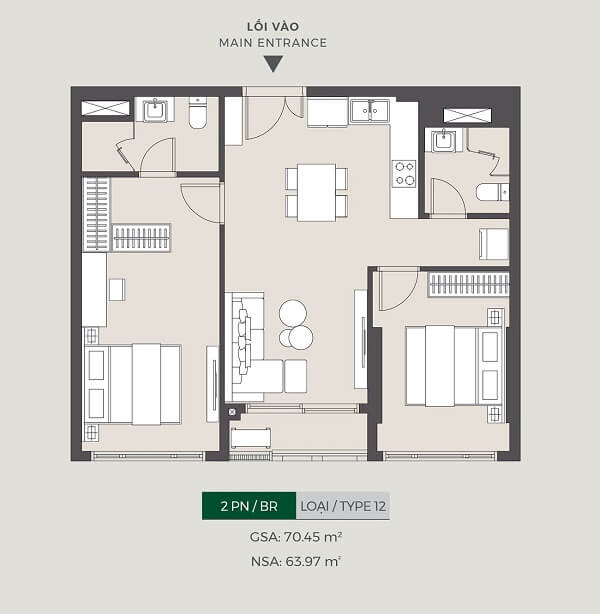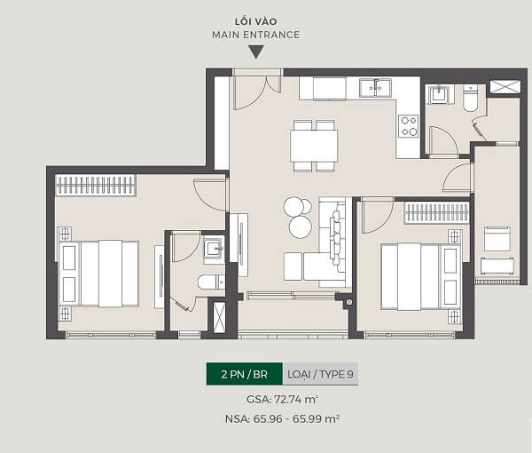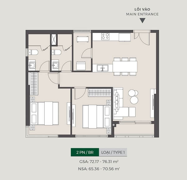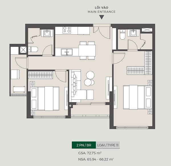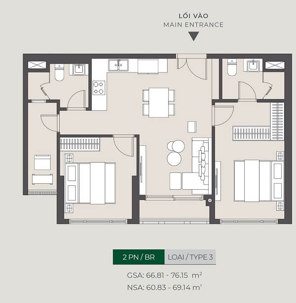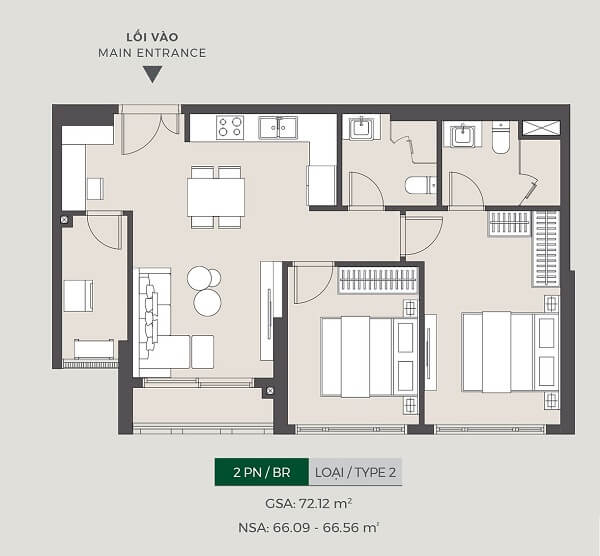 LAYOUT CĂN HỘ 2 PHÒNG NGỦ LUMIERE BOULEVARD