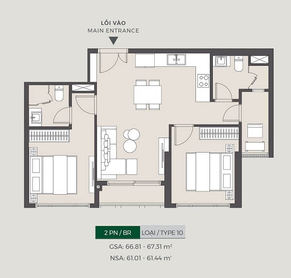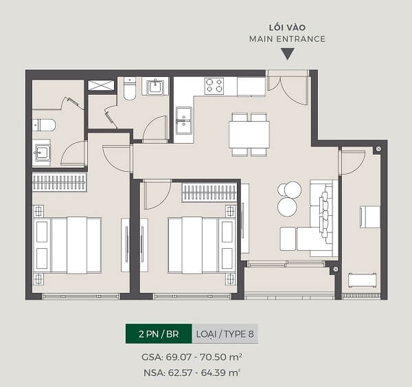 Các căn hộ 2 phòng ngủ tại dự án Lumiere Boulevard là loại căn hộ phổ biến nhất. Loại căn hộ này có nhiều biến thể thiết kế, thay đổi dựa trên vị trí và diện tích cụ thể của từng căn hộ. Tổng quan, các căn hộ 2 phòng ngủ đều sở hữu thiết kế hiện đại và trẻ trung, với sự tối ưu hóa của không gian. Mỗi căn hộ được trang bị logia và khu sân phơi riêng biệt, và tất cả các phòng ngủ đều có cửa sổ hướng ra ngoài để đảm bảo ánh sáng và thông gió tự nhiên. Bếp được thiết kế dạng mở và kết nối trực tiếp với khu vực sân phơi, giúp giảm thiểu mùi khi nấu ăn.