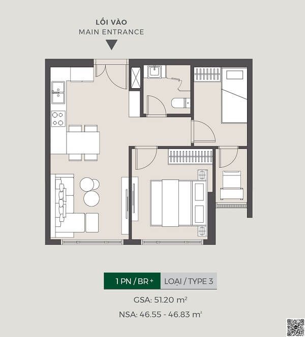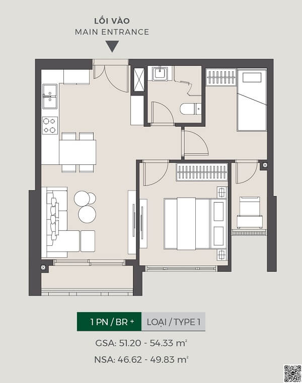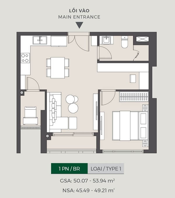 LAYOUT CĂN HỘ 1 PHÒNG NGỦ + LUMIERE BOULEVARD
