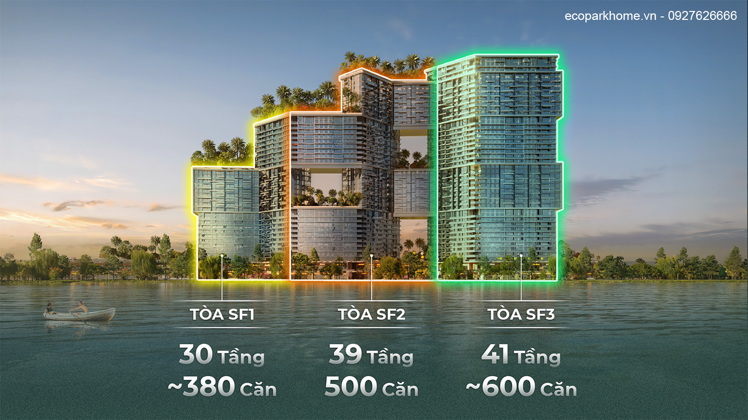 Thiết kế: 03 tháp căn hộ cao từ 30 – 41 tầng