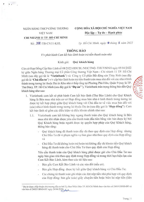 | Ngân hàng bảo lãnh: | Vietinbank |