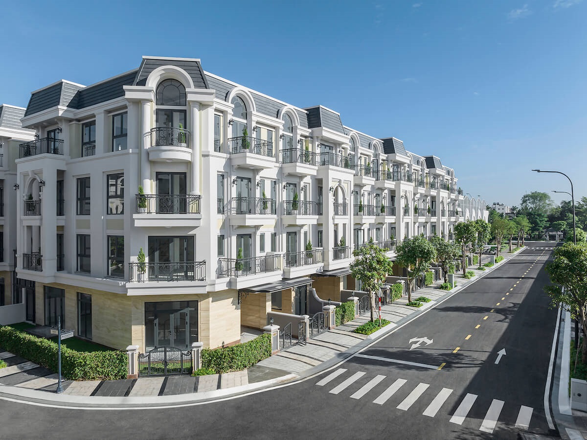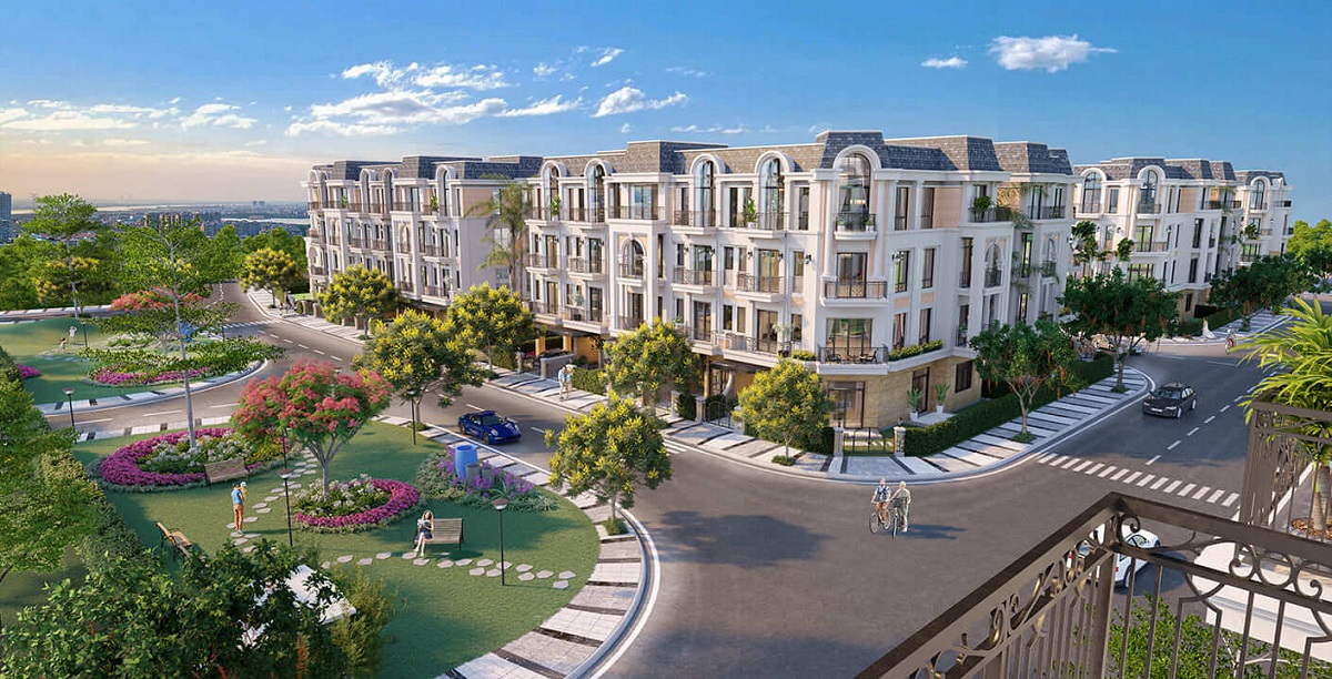 - Dãy E: Bao gồm 30 căn nhà phố liền kề, 4 căn nhà phố vườn, 2 căn liền kề góc và 2 căn đặc biệt.
