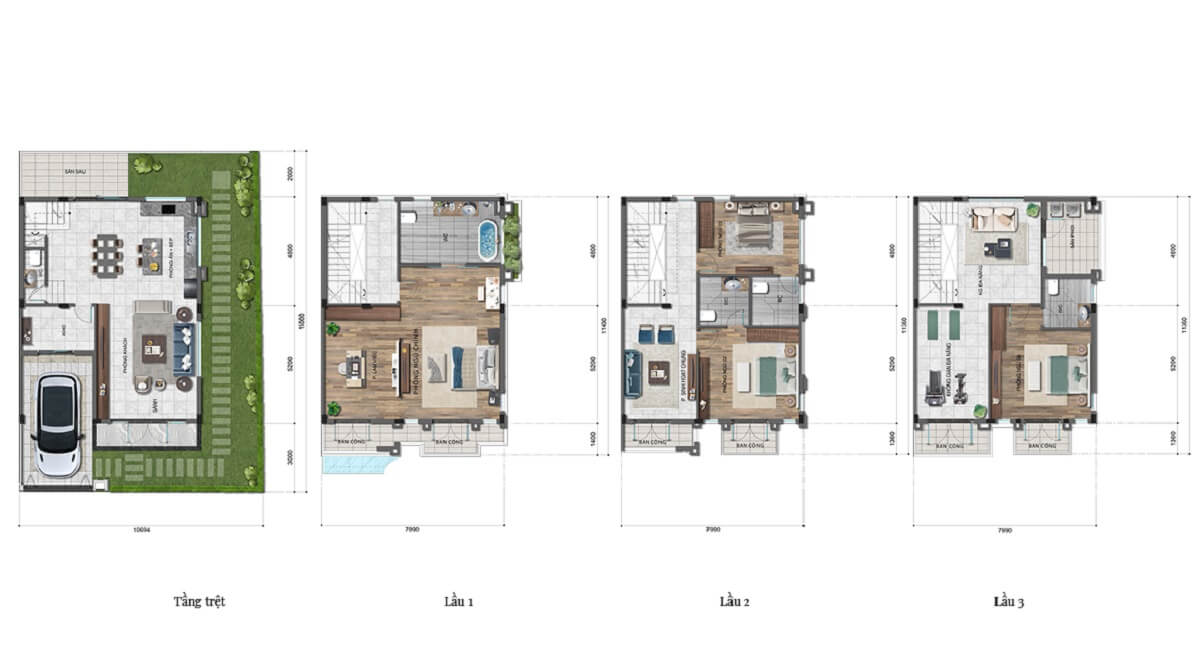 - Căn nhà phố liền kề: Từ 89.1m² đến 120m².