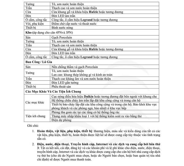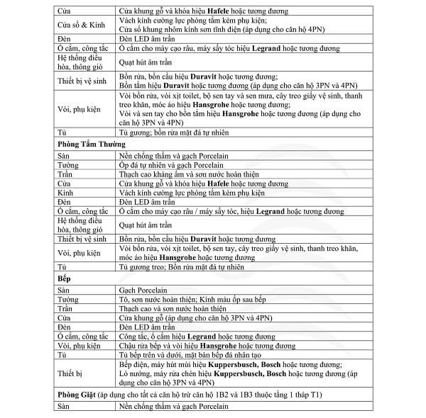 NỘI THẤT – VẬT LIỆU BÀN GIAO CĂN HỘ THE RIVER THỦ THIÊM