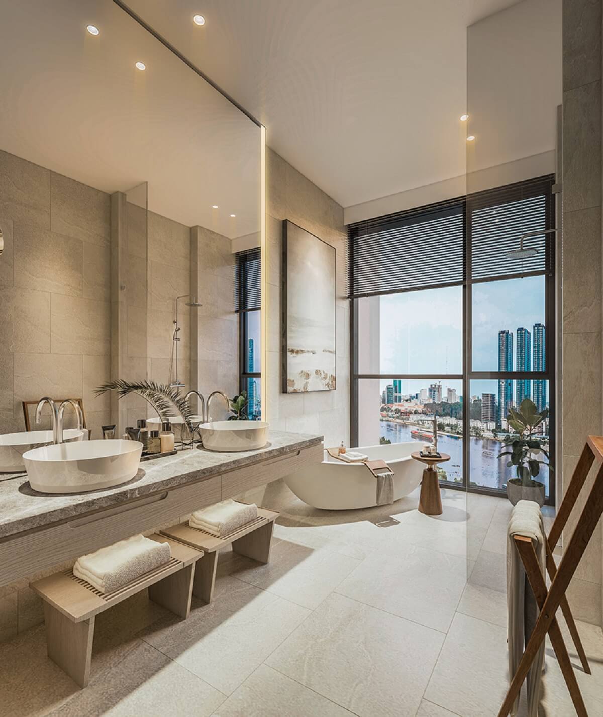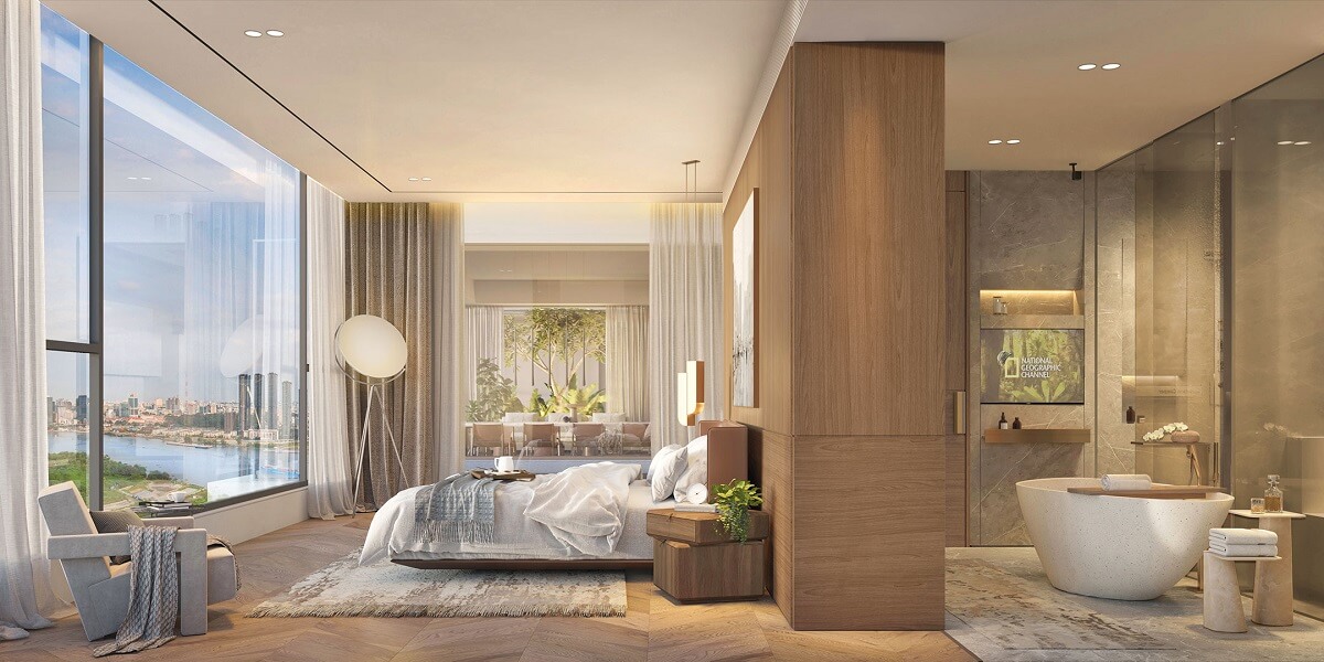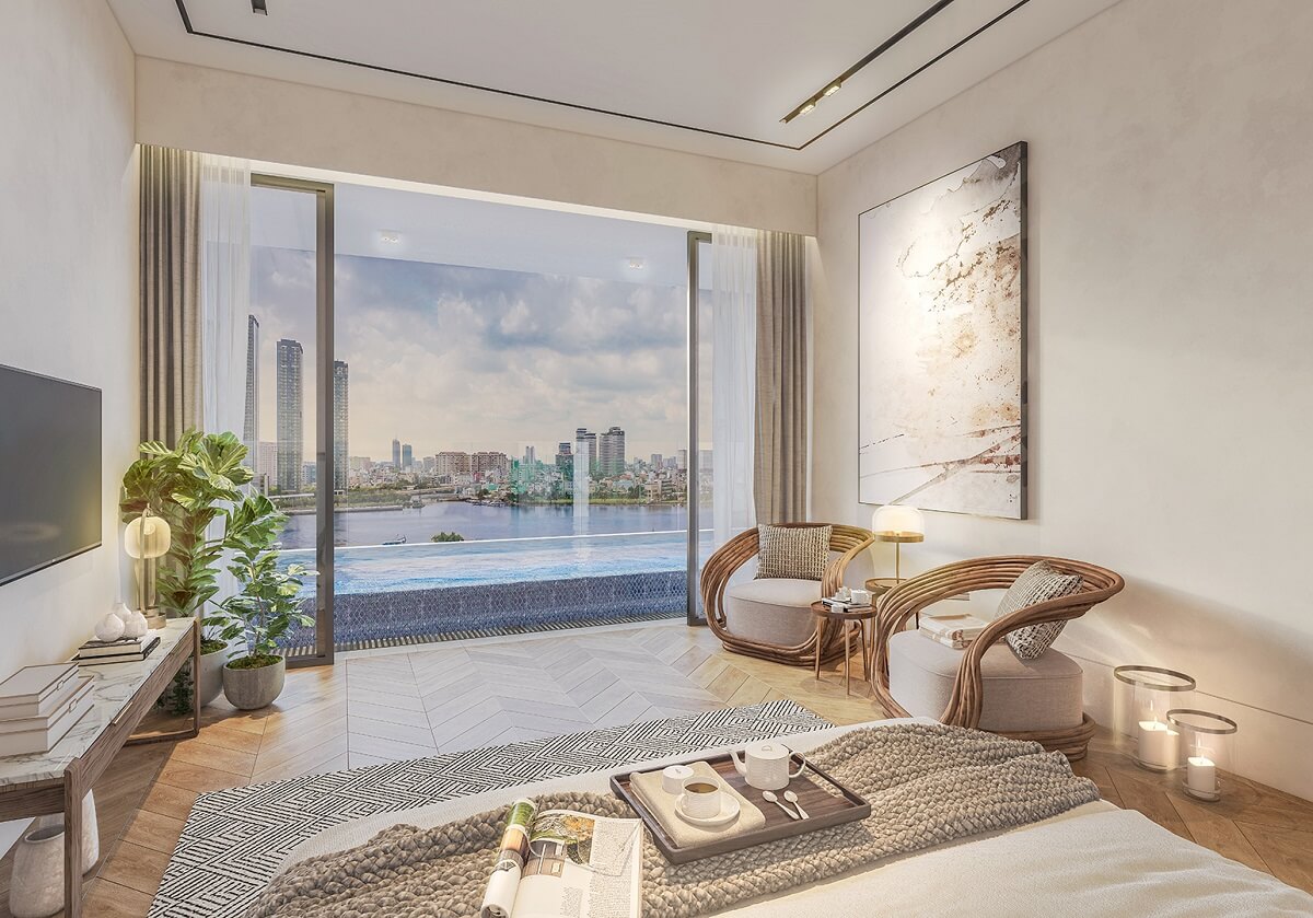 Căn hộ 2 phòng ngủ tại dự án The River Thủ Thiêm được thiết kế với sự tinh tế và tối ưu hóa không gian. Các phòng ngủ được chăm chút với việc sử dụng khu vực loggia riêng biệt cùng cửa sổ rộng, mang lại không gian thoải mái. Bếp được thiết kế liên kết với sân phơi, với bố trí gọn gàng và khu vực quầy bar sang trọng. Phòng khách được thiết kế để liên kết với bancony rộng, tận dụng tối đa tầm nhìn, ánh sáng tự nhiên, và làn gió mát từ thiên nhiên.